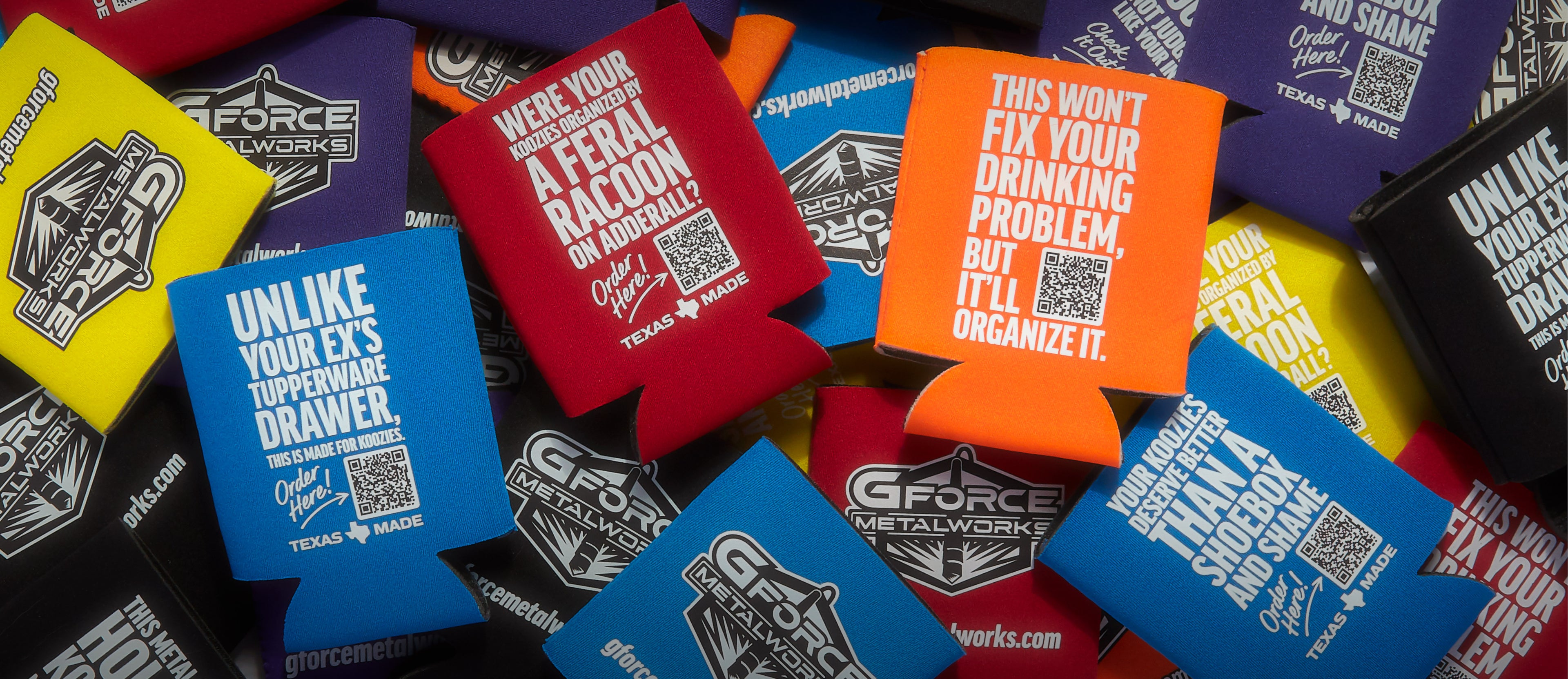 ORDER NOWThe medium koozie caddie is for the seasoned collection that has outgrown the junk drawer and somehow finds its way into a box in the garage before every cookout. Time to give them koozies a real home where they can be used when needed.