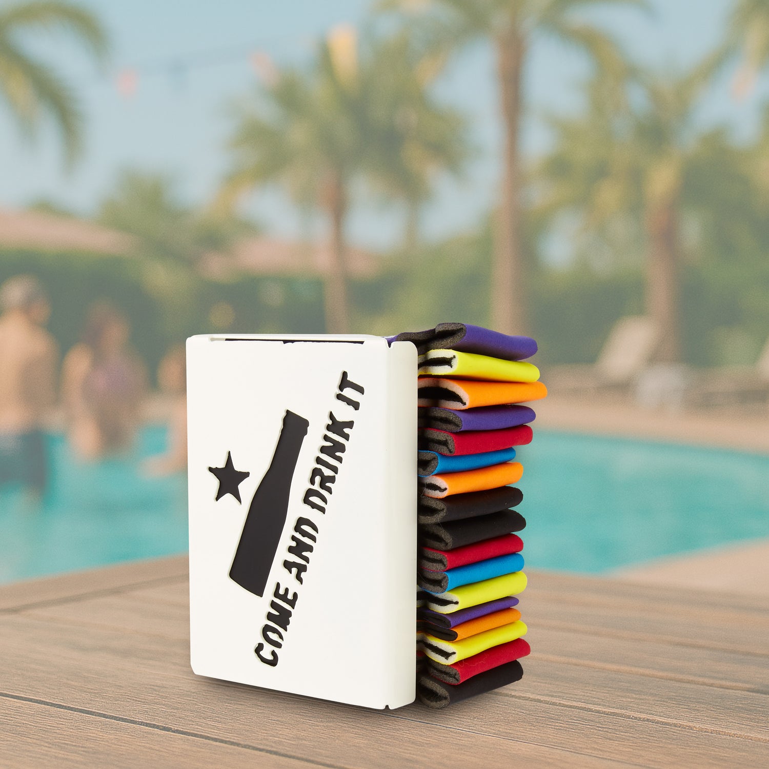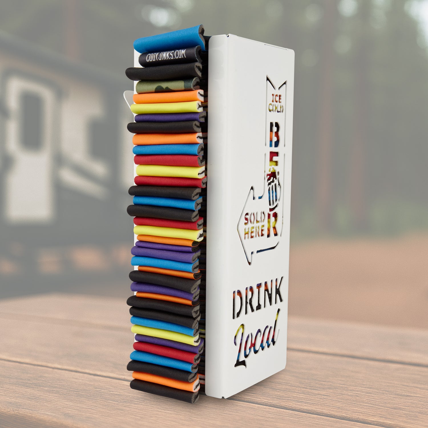 Anyone that wishes their koozies were organized and in order, whenever its time for some cold ones. Great for Patios, Outdoor Kitchens, Man Caves, RV's, Tailgates, Businesses and Gifts!
